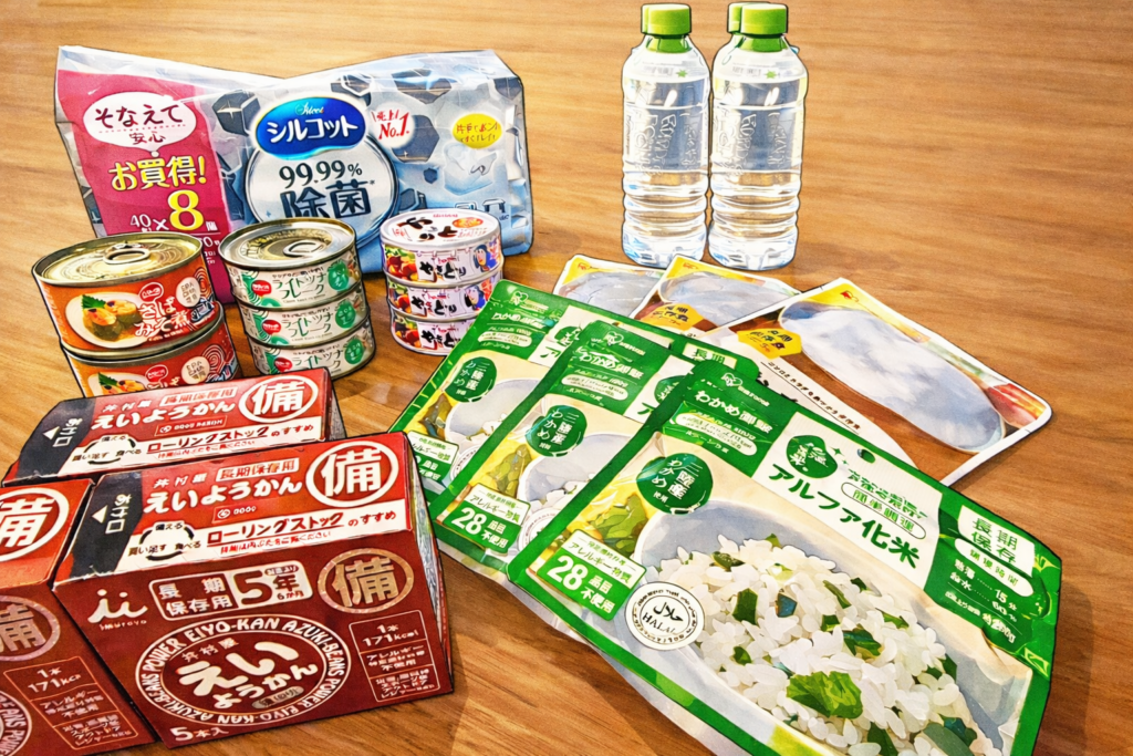 今回の備蓄では、飲料水や保存食を中心に、災害時に役立つ物品を揃えました。